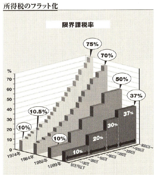 政府はそれをどんどん下げてあげて、1999年にはなんと37%にまでさがりました。(注2)現在45%です。