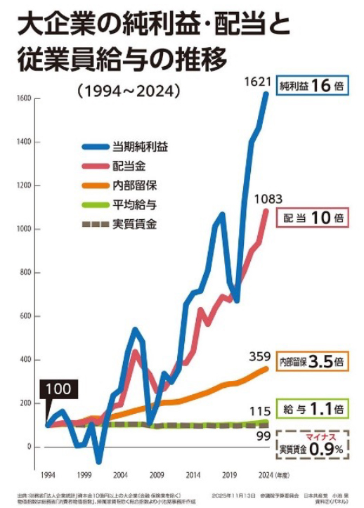 企業は利益を次々と上げていき、国民は生活を苦しくしていきます。
